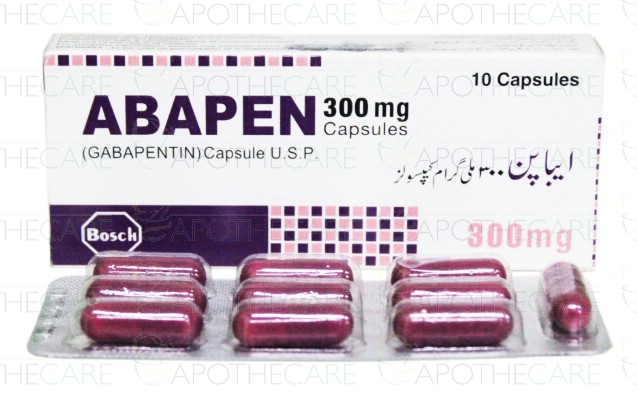 Product Name: Abapen Cap 300mg 10'sProduct Form: CapsulesPack Size: 10'sMarketed By: BOSCH PHARMACEUTICALS (PVT) LTDGeneric Category: Anti-ConvulsantIngredients: Gabapentin