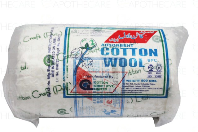 Product Name: Cotton Wool 500gProduct Form: Absorbent Cotton Wool RollPack Size: 500gMarketed By: COTTON CRAFT (PVT) LTDGeneric Category: Surgical Products