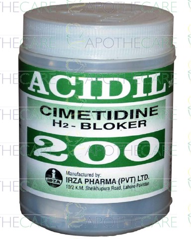 Product Name: Acidil Tab 200mg 1x200'sProduct Form: TabletPack Size: 1x200'sMarketed By: IRZA PHARMA PVT LTDGeneric Category: ANTI-ULCERANTIngredients: Cimetidine