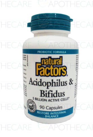 Feature: Natural Factors Acidophilus & Bifidus is a powerful probiotic. This synergistic combination supports intestinal tract health and contains goat milk, an excellent growth factor for beneficial micro-flora.* These cultures are freeze-dried to ensure long-term stability and maximum potency. At time of manufacture guaranteed minimum 5 billion active cells per capsule.