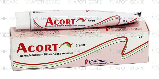 Product Name: Acort Cream 10gProduct Form: CreamPack Size: 10gMarketed By: Platinum Pharmaceuticals (Pvt) LtdGeneric Category: Anti-fungalIngredients: Diflucortolone 0.1% , Isoconazole 0.1%