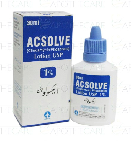 Product Name: ACSOLVE Lotion 1% 30mlProduct Form: LotionPack Size: 30mlMarketed By: ATCO LABORATORIES (PVT) LTDGeneric Category: Anti-InfectiveIngredients: Clindamycin