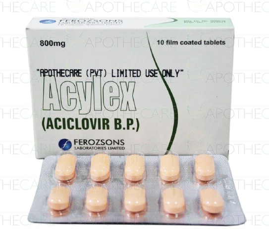 Product Name: Acylex Tab 800mg 10'sProduct Form: TabletPack Size: 10'sMarketed By: FEROZSONS LABORATORIES LTDGeneric Category: Anti-viral