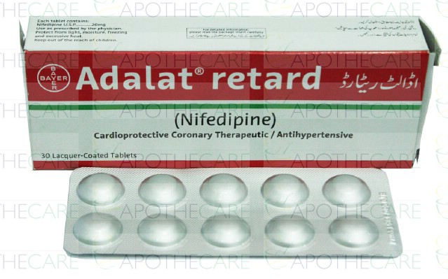 Product Name: Adalat Retard Tab 20mg 3x10'sProduct Form: TabletsPack Size: 3x10'sMarketed By: Bayer Health Care Pvt LtdGeneric Category: Anti-HypertensiveIngredients: Nifedipine