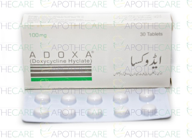 Product Name: Adoxa Tab 100mg 3x10'sProduct Form: TabletsPack Size: 3x10'sMarketed By: PHARMA HEALTH PAKISTAN (PVT.) LTDGeneric Category: Tetracycline Anti-bacterialIngredients: Doxycycline Hyclate
