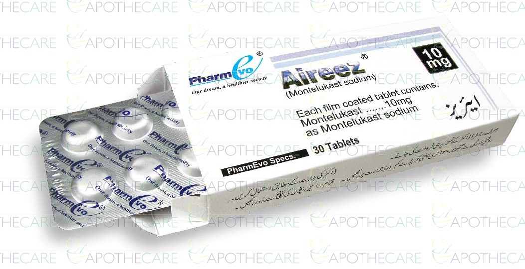 Product Name: AIREEZ Tab 10mg 30'sProduct Form: TabletsPack Size: 30'sMarketed By: PHARM-EVO (PVT) LTD.Generic Category: Anti-leukotrine