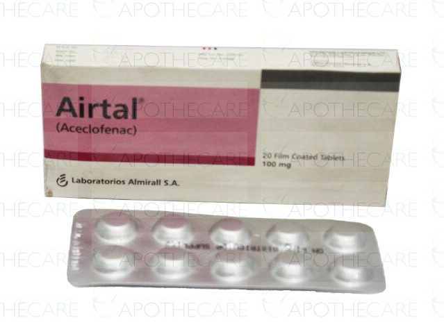 Product Name: Airtal Tab 100mg 10'sProduct Form: TabletPack Size: 10'sMarketed By: HIGHNOON LABORATORIES LTD.Generic Category: NSAIDIngredients: Aceclofenac