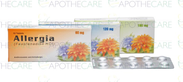 Product Name: Allergia Tab 120mg 10'sProduct Form: TabletsPack Size: 10'sMarketed By: MASS PHARMAGeneric Category: Anti-HistamineIngredients: Fexofenadine
