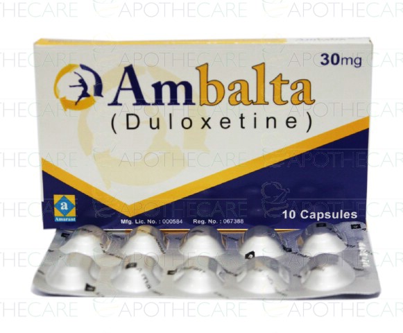 Product Name: Ambalta Cap 30mg 1x10'sProduct Form: CapsulePack Size: 1x10'sMarketed By: Amarant Pharmaceuticals (Pvt) LtdGeneric Category: Anti-DepressantIngredients: Duloxetine