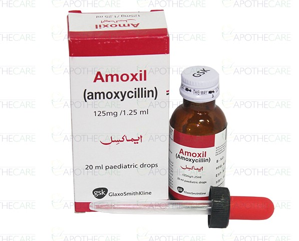 Product Name: Amoxil Drops 125mg/1.25ml 20mlProduct Form: DropsPack Size: 20mlMarketed By: Glaxosmithkline Pakistan LimitedGeneric Category: Amino-PenicillinIngredients: Amoxicillin
