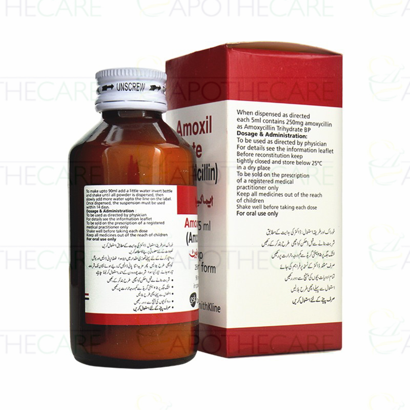 Product Name: Amoxil Syp 250mg/5ml 90mlProduct Form: SyrupPack Size: 90mlMarketed By: Glaxosmithkline Pakistan LimitedGeneric Category: AMINOPENICILLINIngredients: Amoxicillin