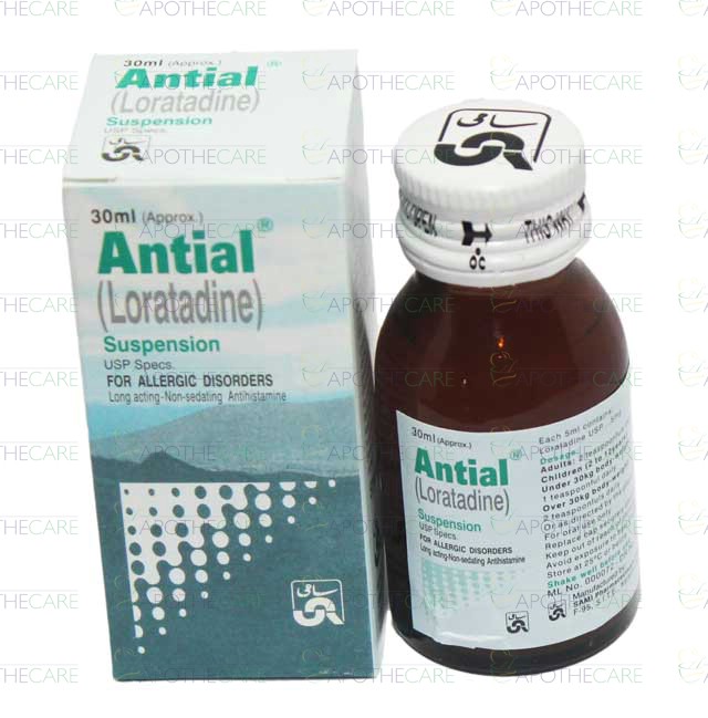 Product Name: Antial Susp 5mg/5ml 30mlProduct Form: SuspensionPack Size: 30mlMarketed By: SAMI PHARMACEUTICALSGeneric Category: Anti-HistamineIngredients: Loratadine