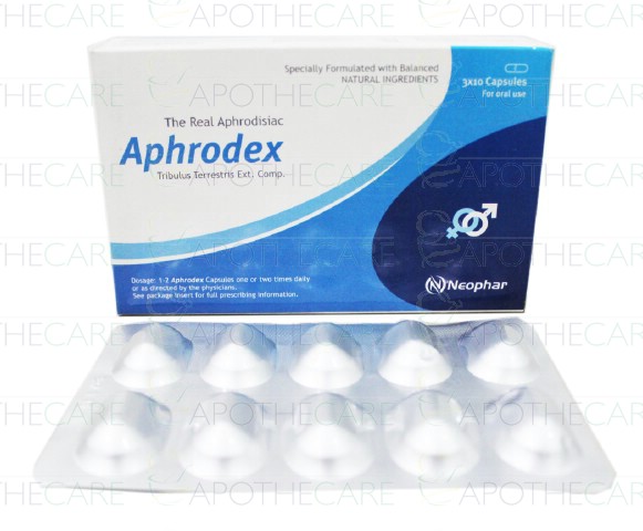 Product Name: Aphrodex Cap 3x10'sProduct Form: CapsulesPack Size: 3x10'sMarketed By: Neophar HeakthCare Pakistan (pvt) LtdGeneric Category: Erectile DysfunctionIngredients: Tribulus Terrestris Ext.