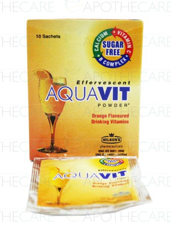 Product Name: Aqua-Vit Powder Sachet 10'sProduct Form: PowderPack Size: 10'sMarketed By: WILSON'S PHARMACEUTICALSGeneric Category: Vitamin SupplementIngredients: Thiamine HCl (Vitamin B1) 15mg, Riboflavin-5-phosphate Sodium (Vitamin B2) 15mg, Pyridoxine HCl (Vitamin B4) 10mg, Nicotinamide 50mg, Ascorbic Acid (Vitamin C) 100mg, Calcium 202.29mg (as Pantothenate / Carbonate / Glycerophosphate / Lactate Gluconate)