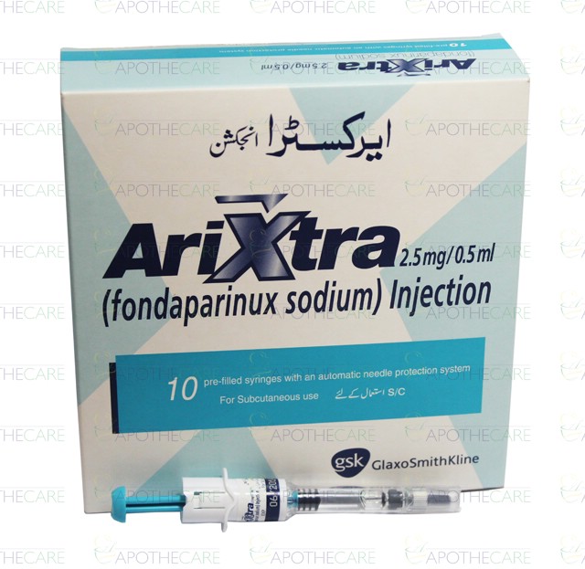Product Name: Arixtra Inj 2.5mg 10PFSx0.5mlProduct Form: InjectionPack Size: 10PFSx0.5mlMarketed By: Glaxosmithkline Pakistan LimitedGeneric Category: ANTI-THROMBOTIC Ingredients: Fondaparinux Sodium