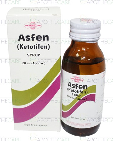 Product Name: Asfen Syp 0.2mg/ml 60mlProduct Form: Syrup Pack Size: 60mlMarketed By: Remington PharmaceuticalsGeneric Category: Anti-HistamineIngredients: Ketotifen