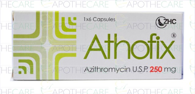 Product Name: Athofix Cap 250mg 1x6's (Zaka Health)Product Form: CapsulesPack Size: 1x6'sMarketed By: Zaka HealthcareGeneric Category: Macrolide Anti-BacterialIngredients: Azithromycin