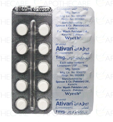 Product Name: Ativan Tab 1mg 10'sProduct Form: TabletPack Size: 10'sMarketed By: Wyeth Pakistan LtdGeneric Category: BenzodiazepinesIngredients: Lorazepam