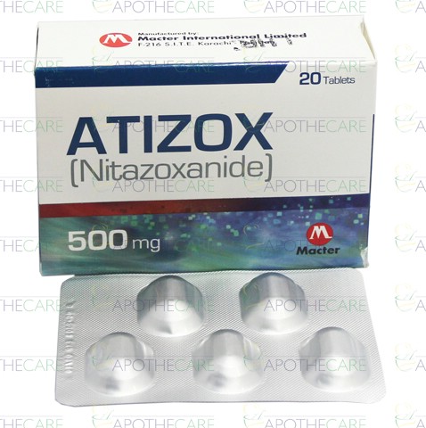 Product Name: Atizox Tab 500mg 20'sProduct Form: TabletsPack Size: 20'sMarketed By: MACTER INTERNATIONAL (PVT) LTD Generic Category: Anti-DiarrhealIngredients: Nitazoxanide