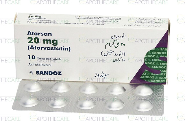 Product Name: Atorsan Tab 20mg 10's Product Form: TabletsPack Size: 10'sMarketed By: NOVARTIS PHARMA PAKISTAN LTDGeneric Category: StatinsIngredients: Atorvastatin