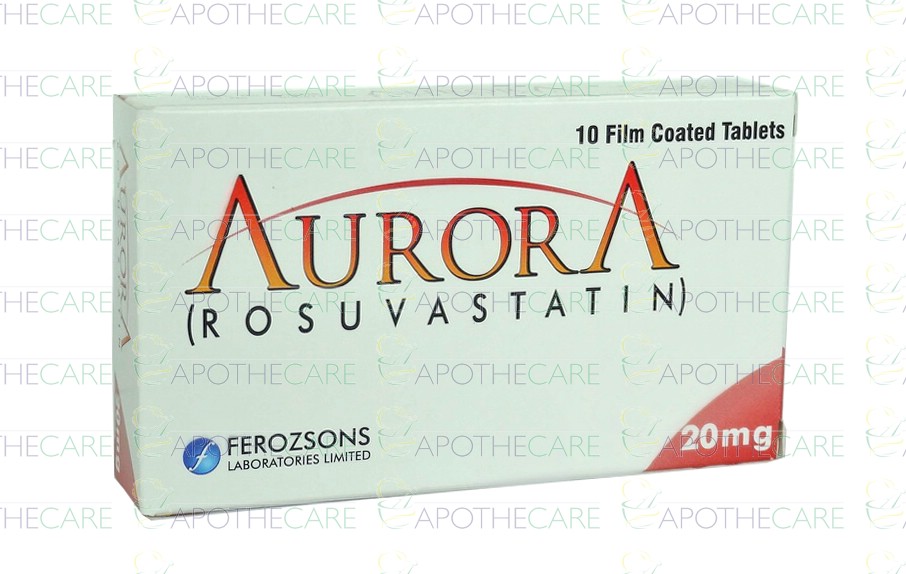 Product Name: AURORA Tab 20mg 10'sProduct Form: TabletPack Size: 10'sMarketed By: FEROZSONS LABORATORIES LTDGeneric Category: STATINSIngredients: Rosuvastatin Calcium