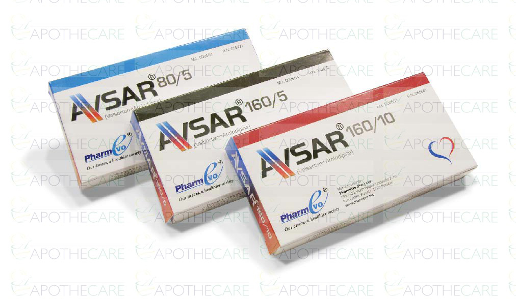 Product Name: Avsar Tab 160mg/10mg 14'sProduct Form: TabletsPack Size: 14'sMarketed By: PHARM-EVO (PVT) LTD.Generic Category: Anti-HypertensiveIngredients: Valsartan 160mg, Amlodipine 10mg