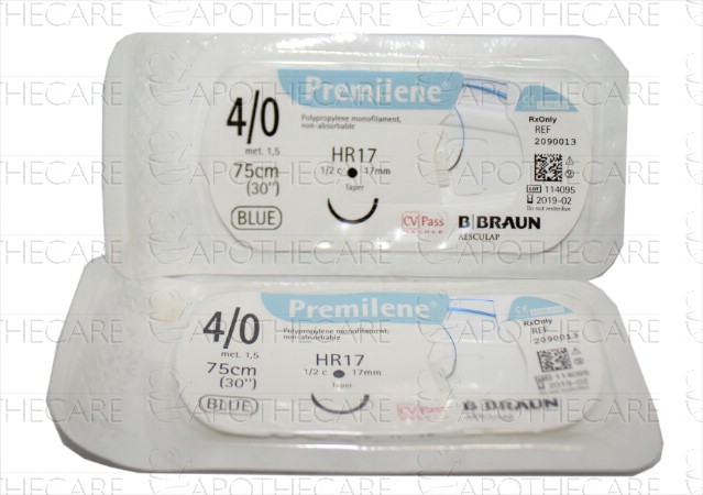 Product Name: B Braun Premilene 75cm, 4/0, 17mm, 1/2 circle, RB 1'sProduct Form: SuturesPack Size: 1'sMarketed By: B.Braun Pakistan (Pvt.) Ltd