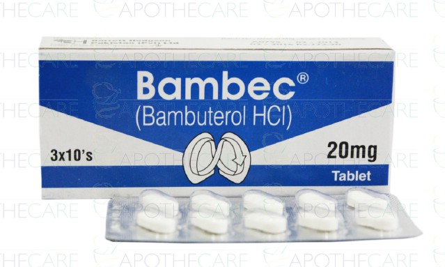 Product Name: Bambec Tab 20mg 30'sProduct Form: TabletsPack Size: 30'sMarketed By: BARRETT HODGSON PAKISTAN (PVT) LTDGeneric Category: B2 StimulantIngredients: Bambuterol HCL