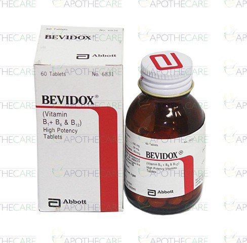 Product Name: BEVIDOX Tab 60'sProduct Form: TabletPack Size: 60'sMarketed By: ABBOTT LABORATORIES (PAKISTAN) LTDGeneric Category: Vitamin SupplementIngredients: Thiamine HCl 100mg, Pyridoxine HCl 50mg, Cyanocobalamin 50mcg