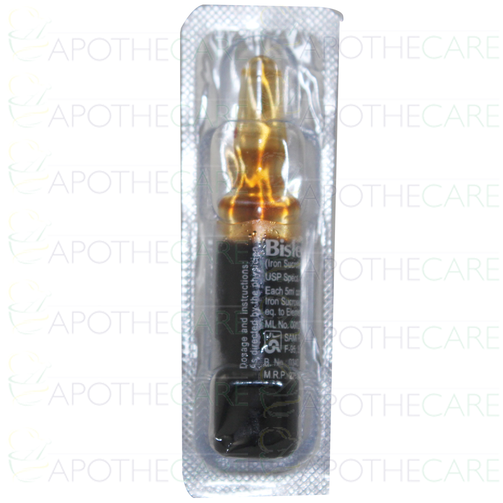 Product Name: Bisleri-S Inj 100mg 5 Ampx5mlProduct Form: InjectionPack Size: 5Ampx5mlMarketed By: SAMI PHARMACEUTICALSGeneric Category: ANTI-ANEMICIngredients: Iron Sucrose ComplexStorage Condition: Store at 2 - 80C (Do not freeze)