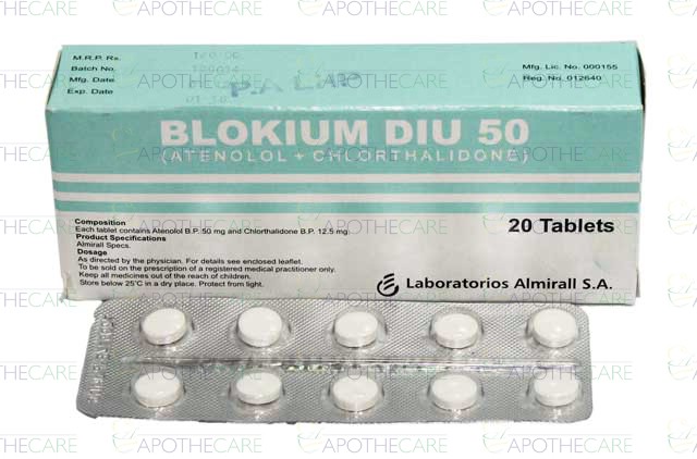 Product Name: Blokium DIU Tab 50mg/12.5mg 20'sProduct Form: TabletsPack Size: 20'sMarketed By: HIGHNOON LABORATORIES LTD.Generic Category: Anti-HypertensiveIngredients: Atenolol 50mg, Chlorthalidone 12.5mg