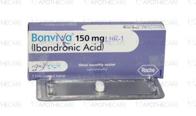 Product Name: BONVIVA Tab 150mg 1'sProduct Form: TabletsPack Size: 1'sMarketed By: ROCHE PAKISTAN LTDGeneric Category: BisphosphonatesIngredients: Ibandronic acid