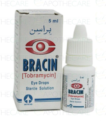 Product Name: Bracin Eye Drops 0.3% 5mlProduct Form: DropsPack Size: 5mlMarketed By: ATCO LABORATORIES (PVT) LTDGeneric Category: Anti-InfectiveIngredients: Tobramycin