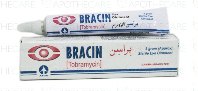 Product Name: Bracin Eye Oint 0.3% 5gProduct Form: OintmentPack Size: 5gmMarketed By: ATCO LABORATORIES (PVT) LTDGeneric Category: Anti-InfectiveIngredients: Tobramycin