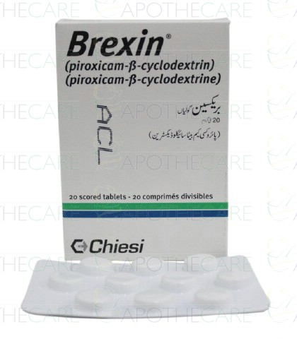 Product Name: Brexin Tab 20mg 10'sProduct Form: TabletsPack Size: 10'sMarketed By: Chiesi Pharmaceuticals (Pvt) LtdGeneric Category: NSAIDIngredients: Piroxicam Beta Cyclodextrin