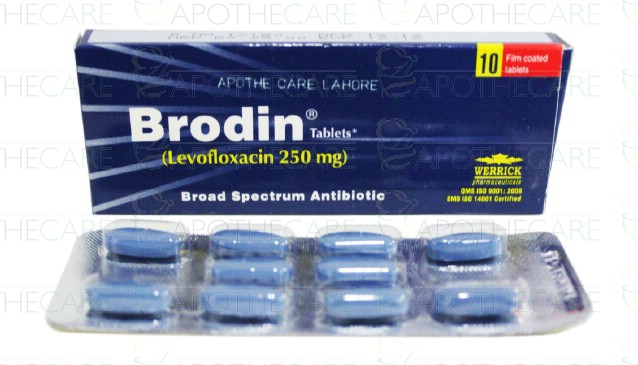 Product Name: Brodin Tab 250mg 10'sProduct Form: TabletsPack Size: 10'sMarketed By: Werrick PharmaceuticalsGeneric Category: Quinolone Anti-BacterialIngredients: Levofloxacin
