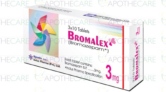 Product Name: BROMALEX Tab 3mg 30'sProduct Form: TabletPack Size: 30'sMarketed By: INDUS PHARMA (PVT) LTDGeneric Category: BENZODIAZEPINE Ingredients: Bromazepam