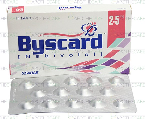 Product Name: Byscard Tab 2.5mg 14'sProduct Form: TabletsPack Size: 14'sMarketed By: SEARLE PAKISTAN Generic Category: ANTI-HYPERTENSIVEIngredients: Nebivolol