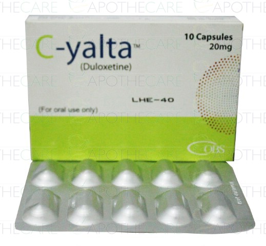 Product Name: C-Yalta Cap 20mg 10's (OBS)Product Form: CapsulePack Size: 10'sMarketed By: OBS PharmaGeneric Category: Anti-DepressantIngredients: Duloxetine