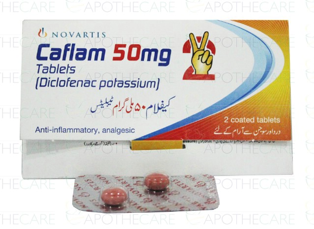 Product Name: Caflam Tab 50mg 2'sProduct Form: TabletsPack Size: 2'sMarketed By: NOVARTIS PHARMA PAKISTAN LTDGeneric Category: NSAIDIngredients: Diclofenac Potassium