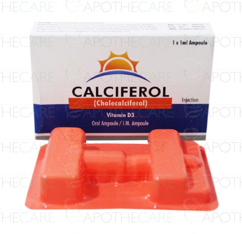 Product Name: Calciferol Inj 5mg 1AmpProduct Form: InjectionPack Size: 1AmpMarketed By: GLOBAL PHARMAGeneric Category: VITAMIN-D ANALOGUEIngredients: Cholecalciferol