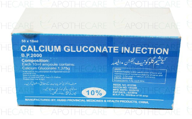 Product Name: Calcium Gluconate Inj 1g 50Ampx10mlProduct Form: InjectionPack Size: 50Ampx10mlMarketed By: Wuhan Grand Pharmaceuticals Group Co, Ltd ChinaGeneric Category: Calcium SupplementIngredients: Calcium Gluconate