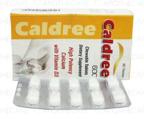 Product Name: Caldree Tab 600mg/200IU 30'sProduct Form: TabletsPack Size: 30'sMarketed By: High Q PHARMACEUTICALSGeneric Category: Calcium SupplementIngredients: Calcium Carbonate 600mg, Vitamin D3 200IU