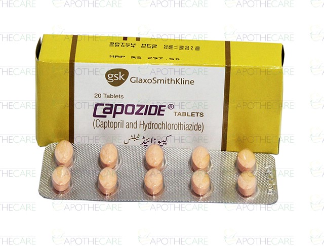 Product Name: Capozide Tab 50mg/25mg 20'sProduct Form: TabletsPack Size: 20'sMarketed By: Glaxosmithkline Pakistan LimitedGeneric Category: Anti-Hypertensive + Diuretic Ingredients: Captopril 50mg , Hydrochlorothiazide 25mg