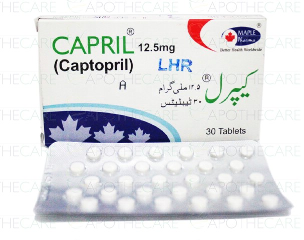 Product Name: Capril Tab 12.5mg 30'sProduct Form: TabletsPack Size: 30'sMarketed By: Maple Pharmaceutical (Pvt) LtdGeneric Category: Anti-HypertensiveIngredients: Captopril