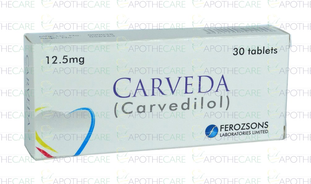 Product Name: Carveda Tab 12.5mg 3x10'sProduct Form: TabletPack Size: 3x10'sMarketed By: FEROZSONS LABORATORIES LTDGeneric Category: Beta BlockerIngredients: Carvedilol