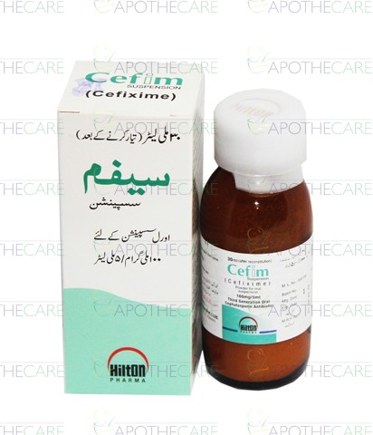 Product Name: Cefim Syp 100mg/5ml 30mlProduct Form: SyrupPack Size: 30ml Marketed By: Hilton Pharma (Pvt) Ltd.Generic Category: Cephalosporin AntibioticIngredients: Cefixime