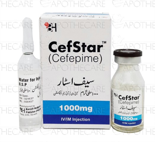 Product Form: InjectionPack Size: 1VialMarketed By: BARRETT HODGSON PAKISTAN (PVT) LTDGeneric Category: Cephalosporin AntibioticIngredients: Cefepime