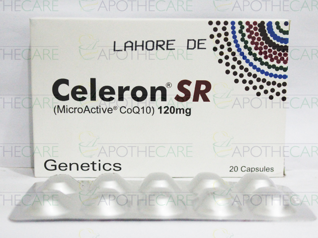 Product Name: Celeron SR Cap 120mg 20'sProduct Form: CapsulesPack Size: 20'sMarketed By: Genetics PharmaceuticalsGeneric Category: Nutrional SupplementIngredients: MicroActive Coenzyme Q10