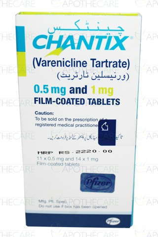 Product Name: Chantix Tab 0.5mg 11'sProduct Form: TabletsPack Size: 11'sMarketed By: PFIZER PAKISTANGeneric Category: Anti-Smoking AgentIngredients: Varenicline (as tartrate)